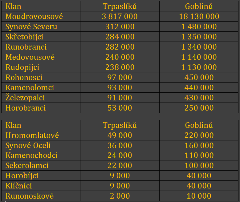 Západní trpaslíci: cca 150 tisíc při 95% urbanizaci + 680 tisíc goblinů